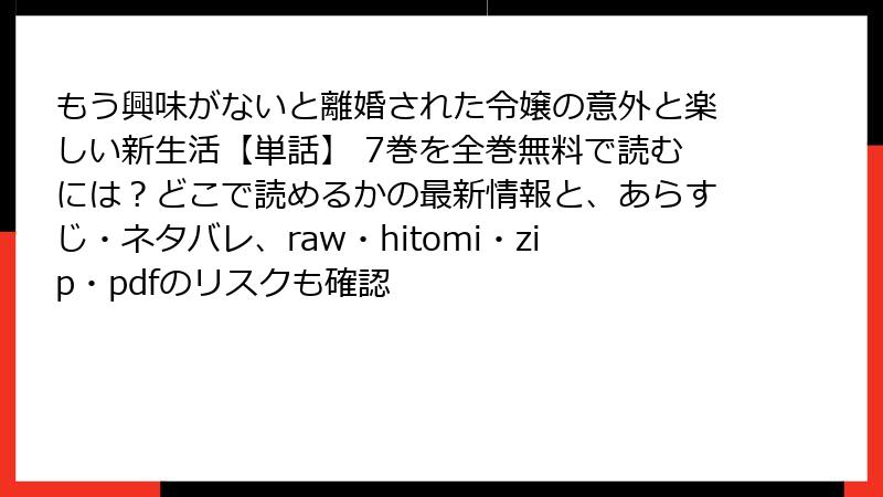 もう興味がないと離婚された令嬢の意外と楽しい新生活を海賊版サイトで読むリスクの詳細