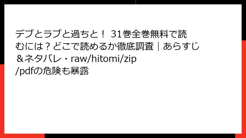 デブとラブと過ちと! 31巻全巻無料で読むには?どこで読めるか徹底調査|あらすじ&ネタバレ・raw/hitomi/zip/pdfの危険も暴露