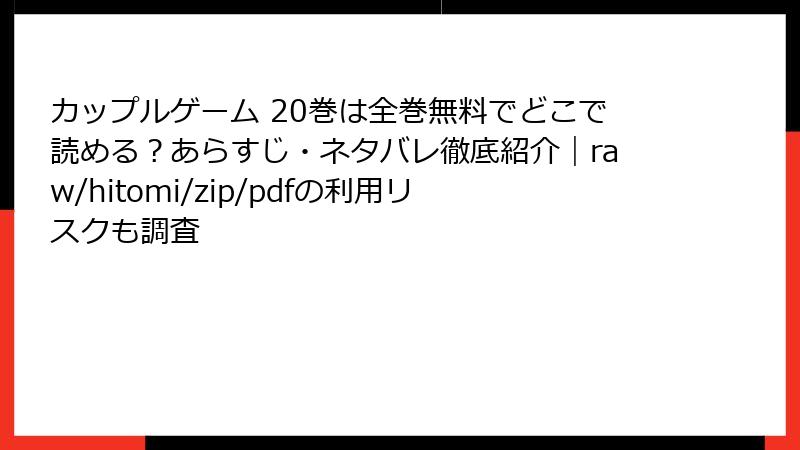 人気のサスペンス漫画『カップルゲーム』を、raw、hitomi、zip、pdf、漫画バンクなどの海賊版サイトで無料で読もうと考える人は少なくありません。しかし、これらのサイトを利用することは、想像以上の危険を伴います。この記事では、法的・セキュリティ面を中心に、詳しくリスクを解説します。海賊版サイトの利用は一見お得に見えますが、結果として大きな損失を招く可能性が高いのです。