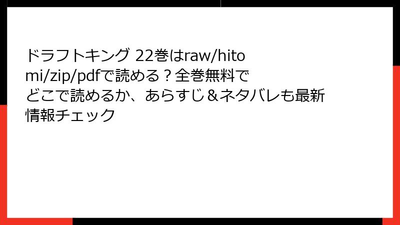 ドラフトキング 22巻はraw/hitomi/zip/pdfで読める?全巻無料でどこで読めるか、あらすじ&ネタバレも最新情報チェック