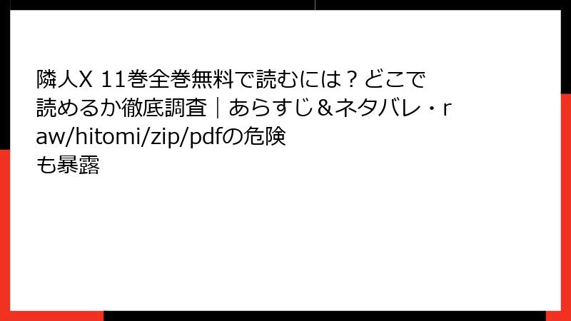 Renta!では、隣人X 11巻が無料試し読み付きで利用できます。婚活パーティーから始まるストーリーの続きを、レンタル形式で手軽に読めます。マンガやノベルが豊富で、毎日更新される点が強みです。