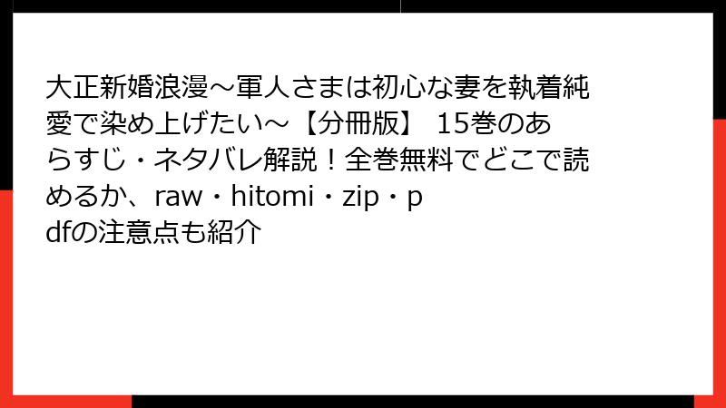 大正新婚浪漫~軍人さまは初心な妻を執着純愛で染め上げたい~【分冊版】 15巻 あらすじ詳解
