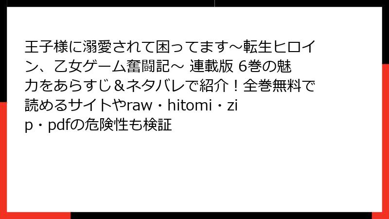 この記事では、漫画「王子様に溺愛されて困ってます~転生ヒロイン、乙女ゲーム奮闘記~」連載版6巻のネタバレ情報を徹底的に掘り下げます。物語の核心に触れる内容が満載なので、未読の方は絶対に読み進めないようご注意ください。転生ヒロインのシルヴィアが直面する新たな試練や、王子アーサーの溺愛の深層を、詳細に解説していきます。