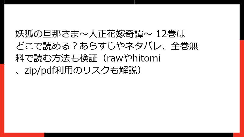 妖狐の旦那さま~大正花嫁奇譚~ 12巻はどこで読める?あらすじやネタバレ、全巻無料で読む方法も検証(rawやhitomi、zip/pdf利用のリスクも解説)