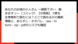 海賊版の漫画はスキャン品質が低く、ページが欠落したり、翻訳が不正確だったりします。rawやhitomiでは、ウイルス付きのファイルが混在し、正常に読めない場合もあります。