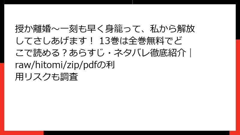 人気のファンタジーロマンス漫画『授か離婚~一刻も早く身籠って、私から解放してさしあげます!』を、raw、hitomi、zip、pdf、漫画バンクなどの海賊版サイトで読むのは一見手軽ですが、深刻なリスクを伴います。この記事では、そうした違法サイト利用の危険性を多角的に掘り下げ、なぜ避けるべきかを詳しく解説します。無料で楽しめる魅力に隠された落とし穴を知り、賢い選択をしましょう。