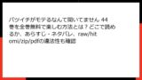 | ebookjapan | はい | 分冊版配信中。PayPay連携で割引が多く、初回クーポンがお得。 |