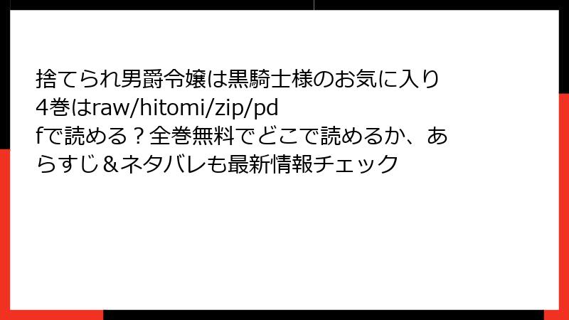 人気のファンタジー漫画「捨てられ男爵令嬢は黒騎士様のお気に入り」の4巻について、詳しく掘り下げてみましょう。この巻では、主人公ソフィアの成長とギルバートとの関係がさらに深まり、過去の影が新たなドラマを生み出します。以下で、物語の背景からキーイベントまでを順を追って解説します。