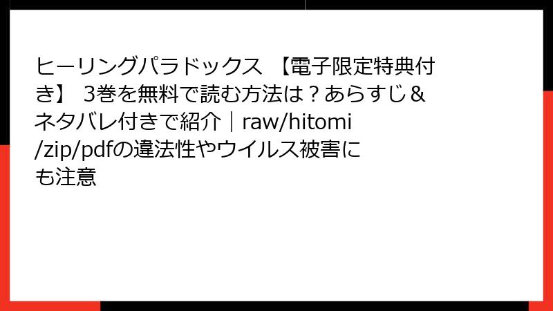 ヒーリングパラドックス 【電子限定特典付き】 3巻を海賊版サイトで読むリスク