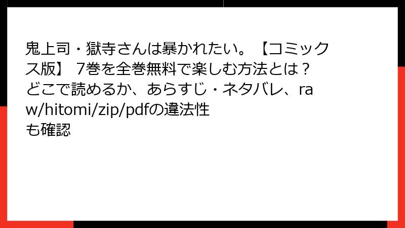 人気BLコミック「鬼上司・獄寺さんは暴かれたい。」を、raw、hitomi、zip、pdf、漫画バンクなどの海賊版サイトで読むのは一見手軽ですが、深刻なリスクが伴います。2021年の著作権法改正以降、利用者の責任も重くなっており、知らずにトラブルに巻き込まれるケースが増えています。この記事では、法的・セキュリティ面を中心に詳しく解説し、なぜ避けるべきかを考察します。