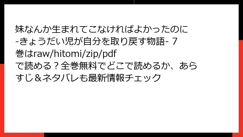 妹なんか生まれてこなければよかったのに -きょうだい児が自分を取り戻す物語- をraw/hitomi/zip/pdf/漫画バンクなどの海賊版サイトで読むリスク