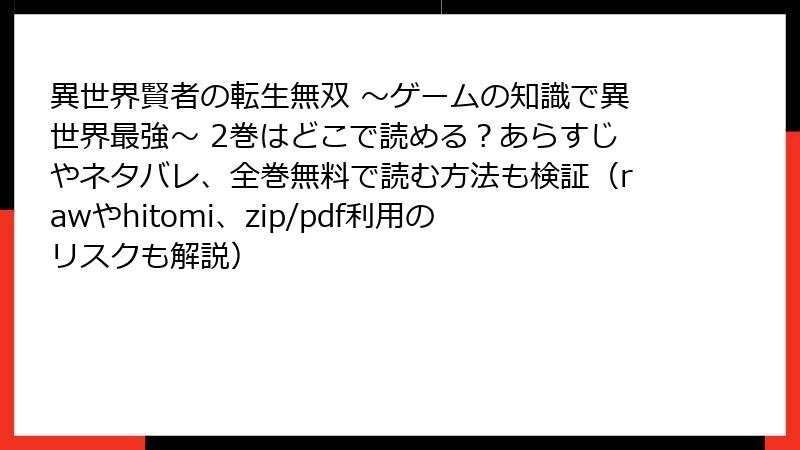 この記事では、漫画「異世界賢者の転生無双 ~ゲームの知識で異世界最強~」第2巻のネタバレ情報を徹底的に掘り下げます。ストーリーの核心部分、キャラクターの行動、重要なバトルシーンなどを詳しく解説。ネタバレ満載なので、未読の方は絶対に読まないでください! ゲーム知識を活かした主人公の無双ぶりが加速する巻で、爽快感が満載です。