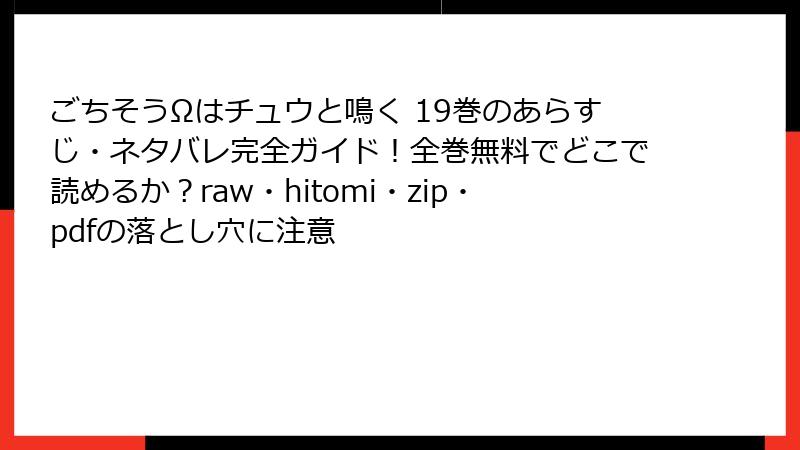 ごちそうΩはチュウと鳴く 19巻のあらすじ・ネタバレ完全ガイド!全巻無料でどこで読めるか?raw・hitomi・zip・pdfの落とし穴に注意