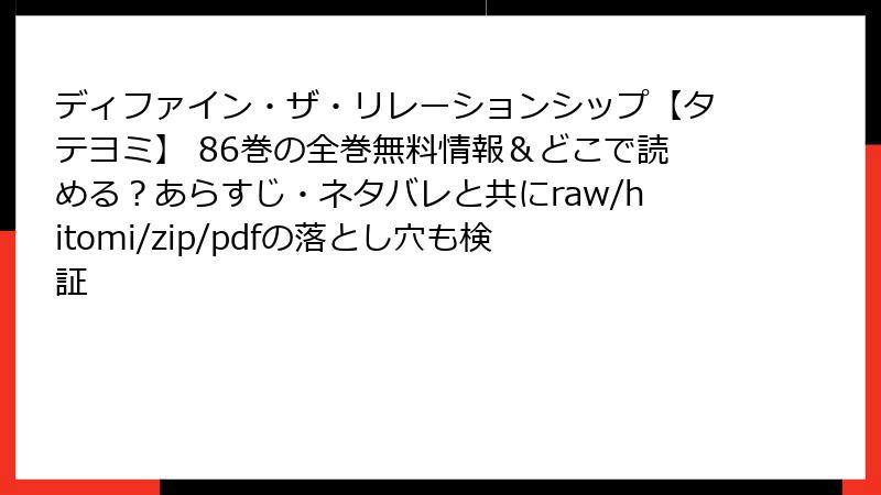 ディファイン・ザ・リレーションシップ【タテヨミ】 86巻の全巻無料情報&どこで読める?あらすじ・ネタバレと共にraw/hitomi/zip/pdfの落とし穴も検証