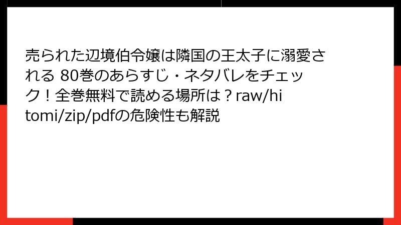 売られた辺境伯令嬢は隣国の王太子に溺愛される 80巻のあらすじ・ネタバレをチェック!全巻無料で読める場所は?raw/hitomi/zip/pdfの危険性も解説