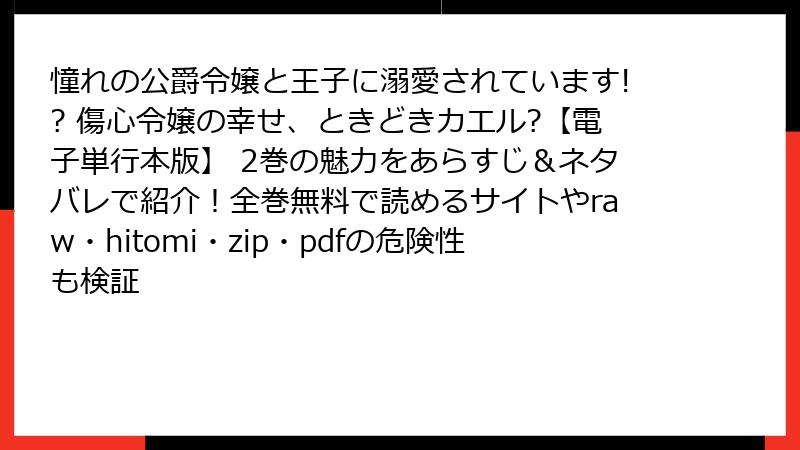 - 憧れの公爵令嬢と王子に溺愛されています!? 傷心令嬢の幸せ、ときどきカエル?【電子単行本版】 2巻 をraw/hitomi/zip/pdf/漫画バンクなどの海賊版サイトで読むリスク