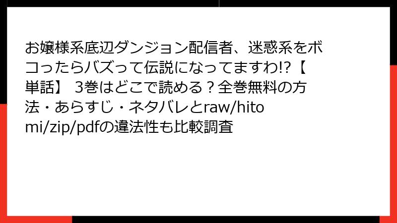 お嬢様系底辺ダンジョン配信者、迷惑系をボコったらバズって伝説になってますわ!?【単話】 3巻はどこで読める?全巻無料の方法・あらすじ・ネタバレとraw/hitomi/zip/pdfの違法性も比較調査