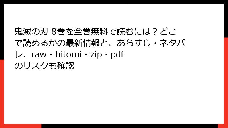 『鬼滅の刃』8巻のような人気漫画を、raw、hitomi、zip、pdf、漫画バンクなどの海賊版サイトで無料で読もうとする人は少なくありません。しかし、これらのサイトは一見便利に見えますが、深刻なリスクを伴います。法的問題からセキュリティ脅威、個人情報の漏洩、さらには業界全体への悪影響まで、利用者は多大な損失を被る可能性があります。以下では、これらのリスクを詳しく解説します。海賊版サイトの利用は、短期的な節約以上の代償を払うことになるかもしれません。