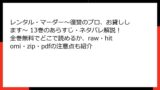 • Renta!: レンタル専門で、安価に読みたい人に。レビューが詳細で、読者の感想を参考にできる。