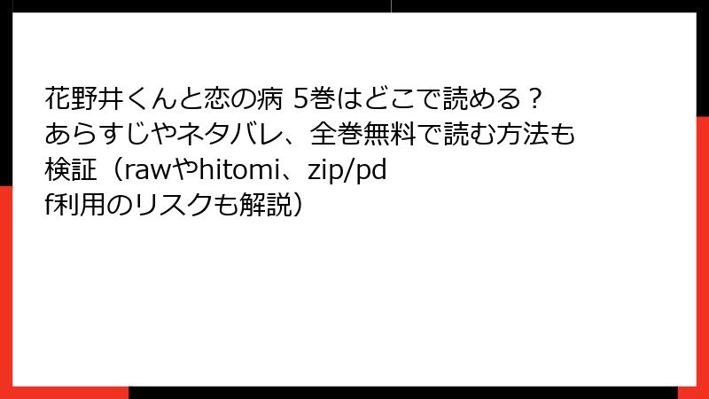 これらのサービスを活用して、『花野井くんと恋の病』5巻を楽しんでください。キャンペーンは変動するので、定期的にチェックを。