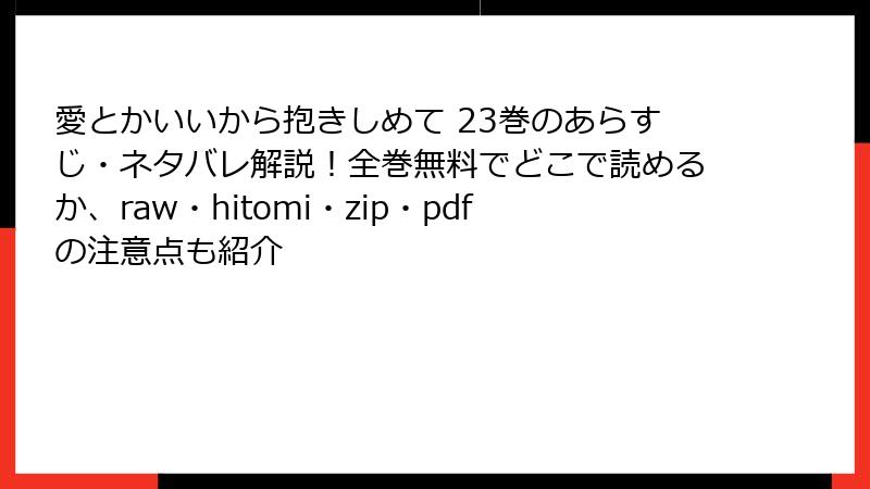 人気漫画「愛とかいいから抱きしめて」を、raw、hitomi、zip、pdf、漫画バンクなどの海賊版サイトで読むのは一見手軽ですが、深刻なリスクが伴います。この記事では、そんな海賊版利用の危険性を多角的に解説します。法的問題からセキュリティの脅威まで、知っておくべきポイントを詳しく掘り下げます。海賊版はクリエイターの権利を侵害し、業界全体に悪影響を及ぼす行為です。以下で具体的に見ていきましょう。