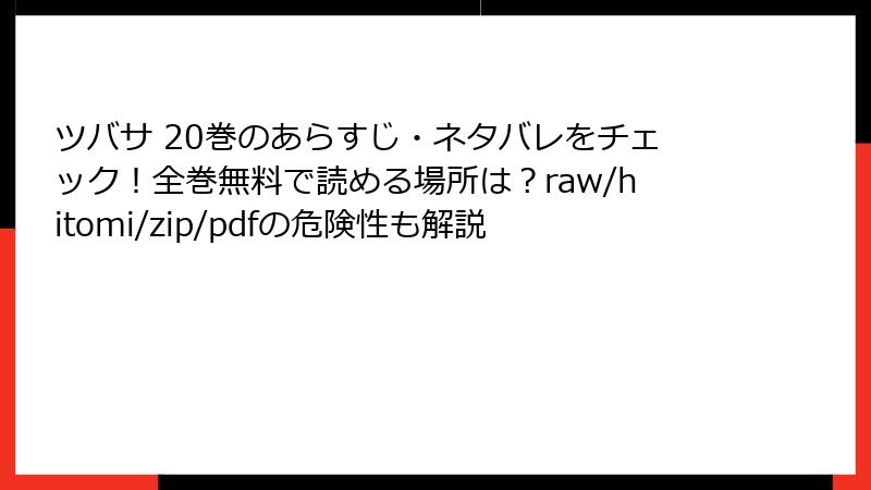 ツバサ 20巻のあらすじ・ネタバレをチェック!全巻無料で読める場所は?raw/hitomi/zip/pdfの危険性も解説