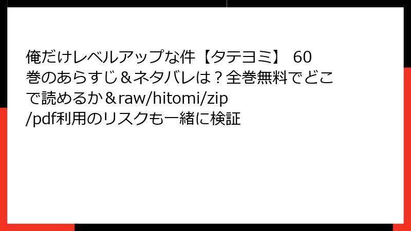 以上のように、海賊版サイトで「俺だけレベルアップな件」60巻を読むリスクは多岐にわたり、法的・セキュリティ・品質・倫理的な観点からおすすめできません。代わりに、公式アプリや電子書籍ストアを利用すれば、安全で高品質な体験が得られます。リスクを認識し、正しい選択をすることで、作品をより深く楽しめるはずです。