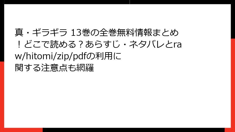 人気漫画「真・ギラギラ」を楽しむ方法として、海賊版サイト(raw、hitomi、zip、pdf、漫画バンクなど)を利用する人もいるかもしれません。しかし、これらのサイトは一見便利に見えますが、深刻なリスクを伴います。この記事では、そんな海賊版サイトで漫画を読むことの危険性を詳しく解説します。法的問題からセキュリティの脅威まで、幅広く考察し、なぜ正規ルートをおすすめするのかをブログ形式でお届けします。