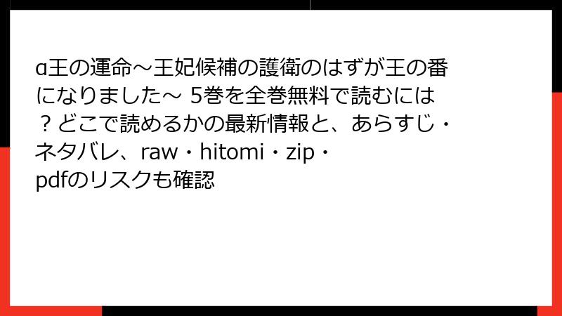 人気のオメガバースBL漫画「α王の運命~王妃候補の護衛のはずが王の番になりました~」を、raw、hitomi、zip、pdf、漫画バンクなどの海賊版サイトで無料で読もうと考える人もいるかもしれません。しかし、これらのサイトを利用することは、さまざまな深刻なリスクを伴います。この記事では、そうした海賊版サイトの利用がもたらす危険性を詳しく解説します。法的問題からセキュリティの脅威まで、読み応えのある内容でお届けします。海賊版を避け、正規ルートで楽しむ重要性を理解していただければ幸いです。