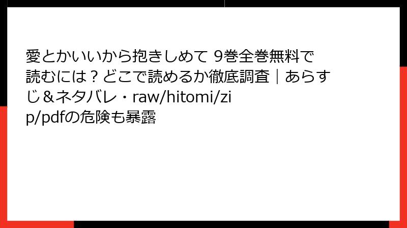 人気漫画『愛とかいいから抱きしめて』を、raw、hitomi、zip、pdf、漫画バンクなどの海賊版サイトで読むことは、手軽に思えるかもしれませんが、さまざまなリスクを伴います。この記事では、そんな海賊版サイト利用の危険性を詳しく解説します。法的問題からセキュリティの脅威、さらには倫理的な側面まで、幅広く掘り下げます。海賊版は一時的な便利さを与えるかもしれませんが、長期的には自分自身や業界に悪影響を及ぼす可能性が高いのです。
