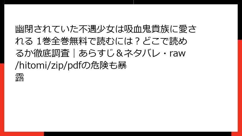 「幽閉されていた不遇少女は吸血鬼貴族に愛される」は、ファンタジーロマンス要素が強い漫画で、不遇な少女が吸血鬼貴族に救われ、愛される物語です。読者からは絵の美しさやストーリーの魅力が評価される一方、虐待描写の重さが指摘される作品です。ここでは、さまざまなプラットフォームからのレビューや口コミを基に詳しくまとめます。