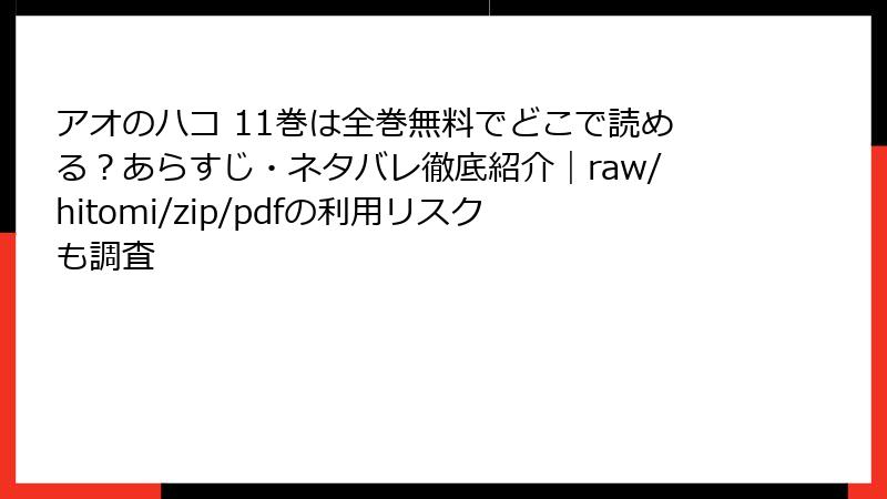 人気漫画『アオのハコ』第11巻を、raw、hitomi、zip、pdf、漫画バンクなどの海賊版サイトで読むのは、手軽に思えるかもしれませんが、さまざまな深刻なリスクを伴います。これらのサイトは著作権を侵害した違法コンテンツを提供しており、利用者は法的・セキュリティ的な問題に直面する可能性が高いです。以下で、詳しく解説します。