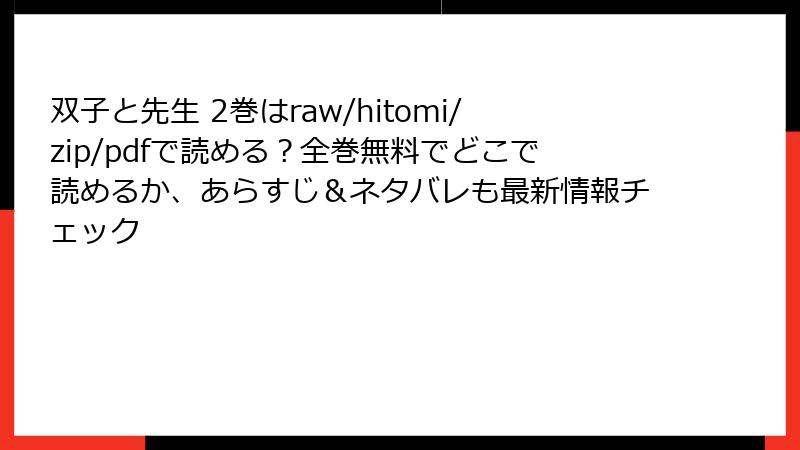 人気のBL漫画『双子と先生 2巻』を、raw、hitomi、zip、pdf、漫画バンクなどの海賊版サイトで無料で読もうとする人は少なくありません。しかし、これらのサイトを利用することは、さまざまな深刻なリスクを伴います。この記事では、法的側面からセキュリティ、品質、倫理的影響までを詳しく解説します。海賊版の魅力に惑わされず、正規ルートでの読書をおすすめしますが、ここではリスクに焦点を当ててブログ記事風にまとめました。