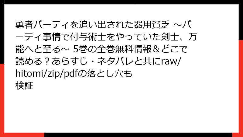 この記事では、人気コミック「勇者パーティを追い出された器用貧乏 ~パーティ事情で付与術士をやっていた剣士、万能へと至る~」を、海賊版サイト(raw、hitomi、zip、pdf、漫画バンクなど)で読むことの潜在的なリスクについて詳しく解説します。海賊版サイトは一見便利に見えますが、法的・セキュリティ面での深刻な問題を抱えています。公式ルートでの購読を推奨しますが、ここではリスクを多角的に考察します。なお、この情報は一般的な知識に基づき、法的アドバイスではありません。