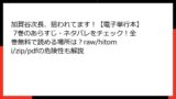 | ウイルス・マルウェア感染 | サイト内のリンクやダウンロードファイルにウイルスが潜み、PCやスマホが感染。データ破壊や動作不良を引き起こす。ランサムウェアの場合、ファイルを暗号化され、身代金を要求される。 |