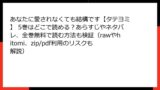 - サイトの閉鎖リスク: 突然アクセス不能になり、続きが読めなくなる。過去に大規模サイトが摘発された事例多数。