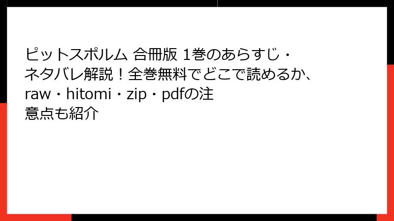 ピットスポルム 合冊版 1巻をraw/hitomi/zip/pdf/漫画バンクなどの海賊版サイトで読むリスクの詳細