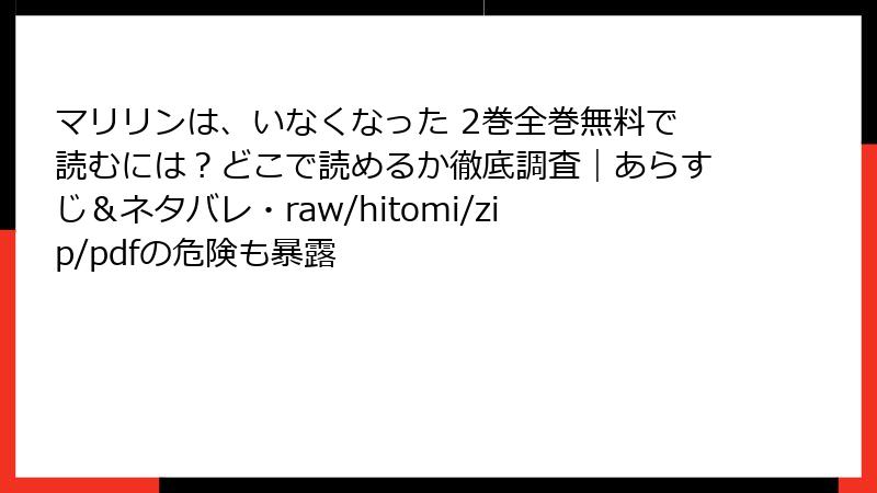人気漫画「マリリンは、いなくなった」2巻を、raw、hitomi、zip、pdf、漫画バンクなどの海賊版サイトで読もうとする人は少なくありません。しかし、これらのサイトを利用することは、さまざまな深刻なリスクを伴います。この記事では、海賊版サイトの利用がもたらす法的、セキュリティ、詐欺、倫理的・経済的な問題を詳しく解説します。違法行為を避け、正規の方法で楽しむことを強くおすすめします。以下で、各リスクを深掘りしていきます。
