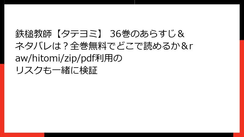 まとめると、海賊版サイトの利用は一見便利ですが、法的・セキュリティ・倫理的な面で大きなリスクを伴います。「鉄槌教師【タテヨミ】」のような魅力的な作品を長く楽しむためにも、合法的な方法を選ぶことをおすすめします。