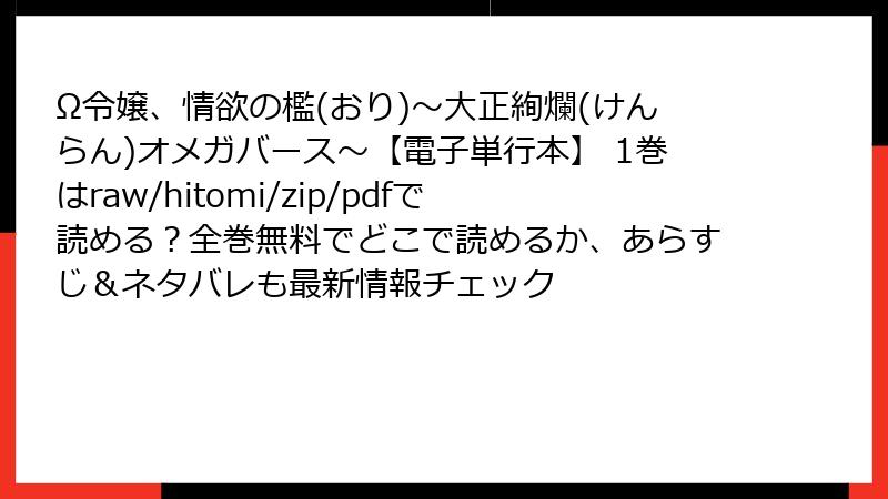 Ω令嬢、情欲の檻(おり)~大正絢爛(けんらん)オメガバース~【電子単行本】 1巻はraw/hitomi/zip/pdfで読める?全巻無料でどこで読めるか、あらすじ&ネタバレも最新情報チェック