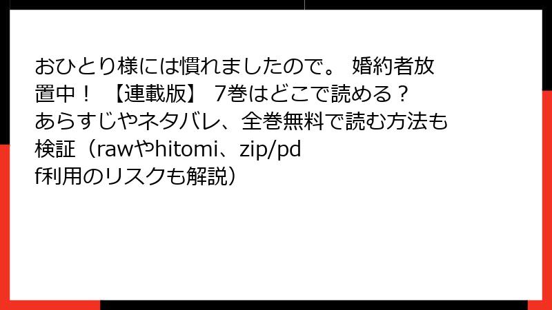 - おひとり様には慣れましたので。 婚約者放置中! 【連載版】 7巻