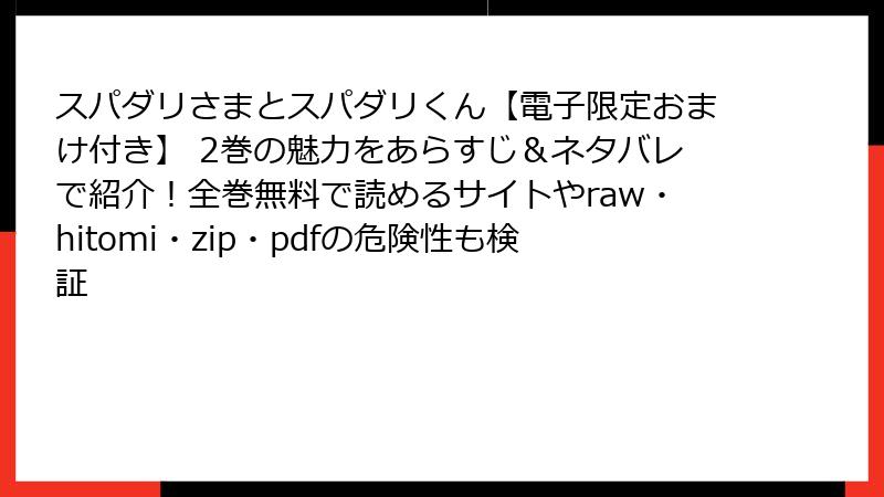 スパダリさまとスパダリくん【電子限定おまけ付き】 2巻の魅力をあらすじ&ネタバレで紹介!全巻無料で読めるサイトやraw・hitomi・zip・pdfの危険性も検証