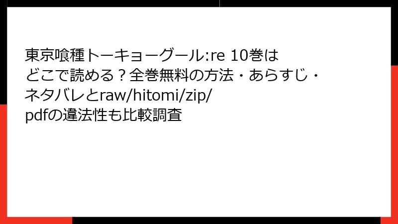人気漫画『東京喰種:re』の第10巻を、raw、hitomi、zip、pdf、漫画バンクなどの海賊版サイトで読もうと考える人もいるかもしれません。しかし、これらのサイトを利用することは、さまざまな深刻なリスクを伴います。この記事では、法的側面からセキュリティ、品質、倫理的問題までを詳しく解説します。海賊版の利用は避け、正規の手段で楽しむことを強くおすすめします。