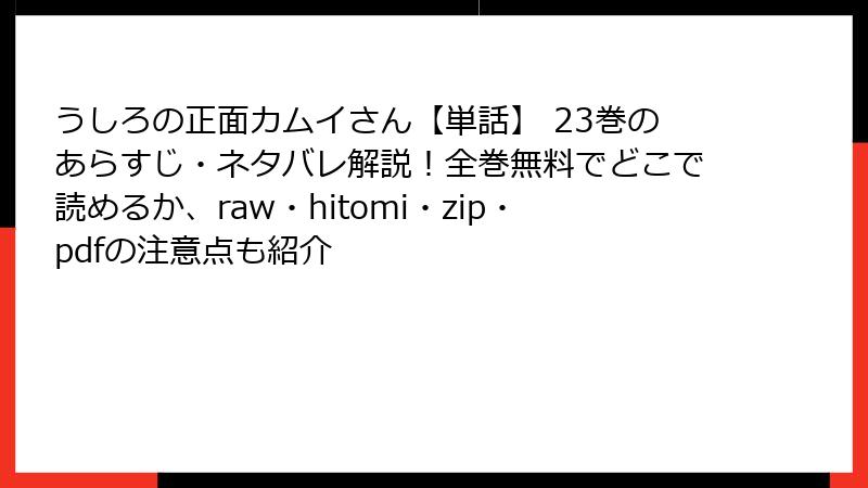 うしろの正面カムイさん【単話】 23巻を海賊版サイトで読むリスク