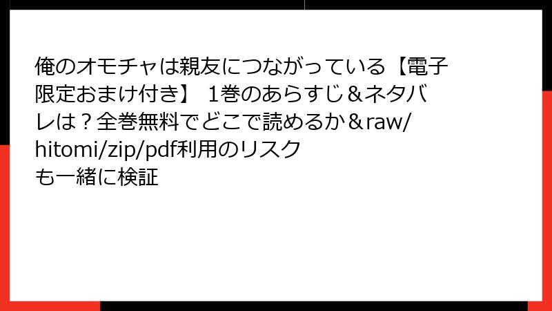 この記事では、佳門サエコ先生のBLコミック「俺のオモチャは親友につながっている【電子限定おまけ付き】」1巻の電子書籍版が、どのプラットフォームで読めるかを詳しく紹介します。指定されたサービスを中心に、コミックシーモア、ブックライブ (BookLive)、まんが王国、ebookjapan、Renta!、めちゃコミック (めちゃコミ)、ピッコマ、LINEマンガについて検証しました。基本的にこれらのサービスで配信されており、試し読みや購入オプションが充実しています。電子限定おまけ付きのバージョンが主で、価格や特典の違いを考慮して選べます。読み応えを出すために、各サービスの特徴や利用ポイントを掘り下げます。
