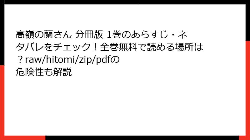 高嶺の蘭さん 分冊版 1巻のあらすじ・ネタバレをチェック!全巻無料で読める場所は?raw/hitomi/zip/pdfの危険性も解説