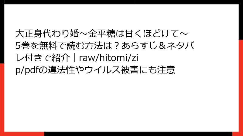 大正身代わり婚~金平糖は甘くほどけて~ 5巻を無料で読む方法は?あらすじ&ネタバレ付きで紹介|raw/hitomi/zip/pdfの違法性やウイルス被害にも注意
