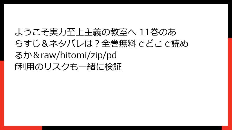 ようこそ実力至上主義の教室へ 11巻を海賊版サイトで読むリスク詳解