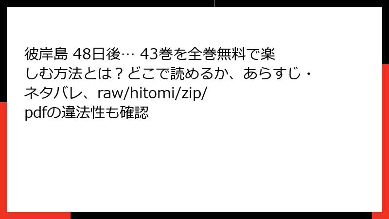 彼岸島 48日後… 43巻を全巻無料で楽しむ方法とは?どこで読めるか、あらすじ・ネタバレ、raw/hitomi/zip/pdfの違法性も確認