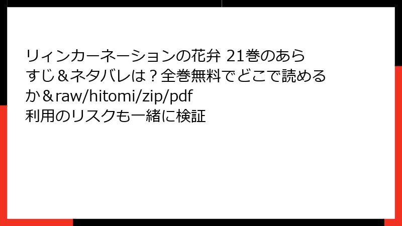 人気漫画「リィンカーネーションの花弁」を、raw/hitomi/zip/pdf/漫画バンクなどの海賊版サイトで読むのは一見便利に思えますが、さまざまな深刻なリスクを伴います。この記事では、そうした海賊版利用の危険性を詳しく解説します。法的問題からセキュリティの脅威、経済的・倫理的な側面までを掘り下げ、なぜ正規ルートをおすすめするのかを考察します。海賊版は一時的な楽しみを提供するかもしれませんが、長期的には大きな損失を生む可能性が高いのです。